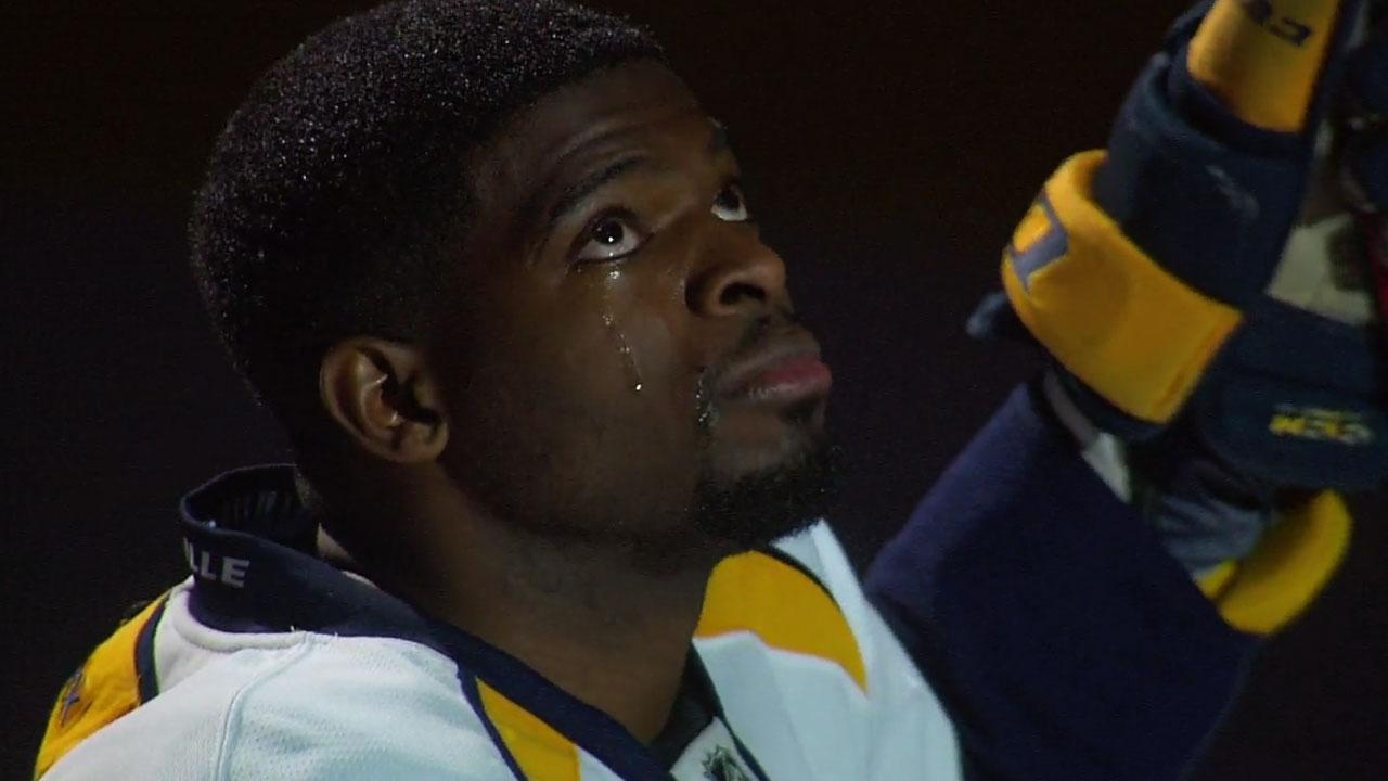 So, of course, the game was going to be an emotional affair. The second Subban stepped on ice for warmups, the fans cheered and serenaded their former player. Prior to the game, when the players lined up on the ice, a video tribute was played, showcasing all that Subban had achieved in Montreal. When the video was over, and the words “Welcome back PK!” were shown on screen, Subban’s name was echoed around the arena. Standing there on the ice, PK Subban couldn’t hold it in any longer. Eyes red, he had burst into tears , as fans continued to cheer his name.